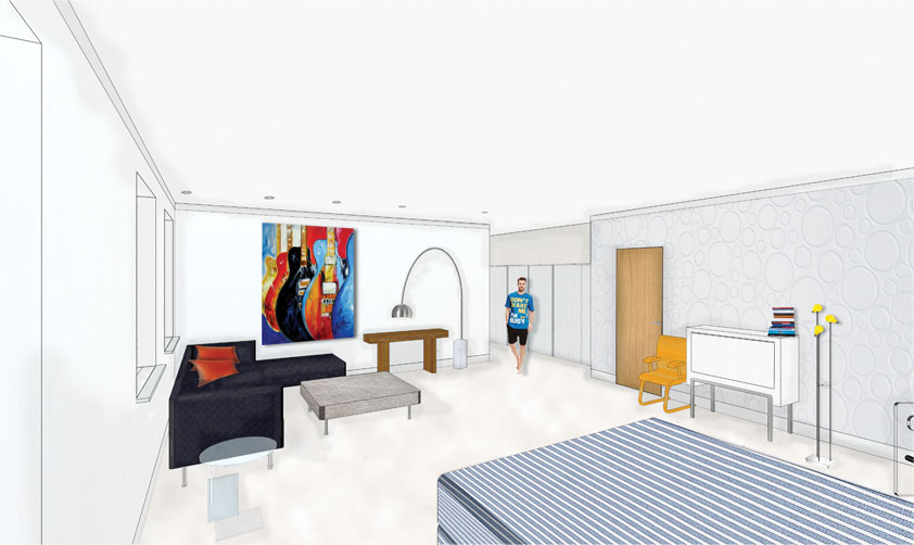 Space planning to consider the modern ethos of co-housing; the concept of Life Edited and the need for individual kitchens for each student whilst embracing the brand values of the John Lewis Partnership plc.