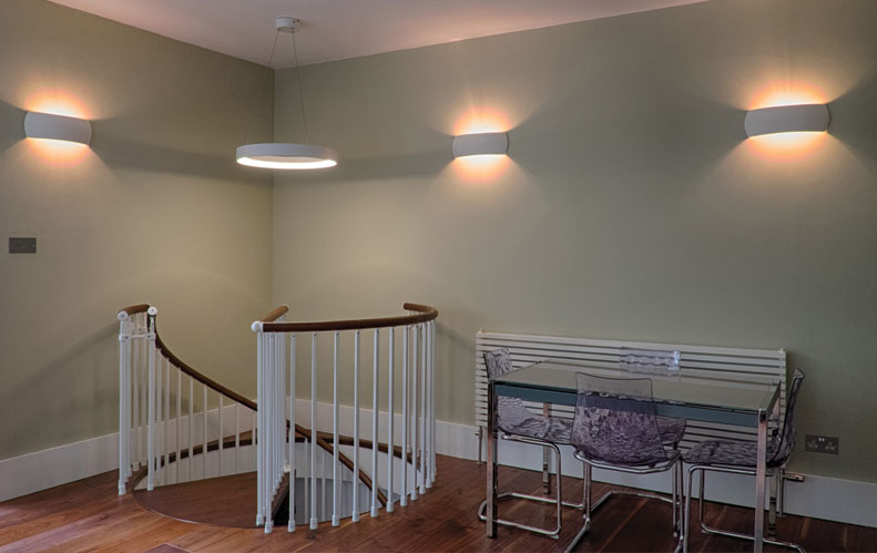 | Residential Project London SE16 - combine a separate 2 bedroom ground-floor and 1 bedroom basement flat into one cohesive living space Internal walls were removed to create an open kitchen and living area which flows to the lower level down a bespoke spiral staircase. Every opportunity was taken to expand storage space and promote clutter-free living. |