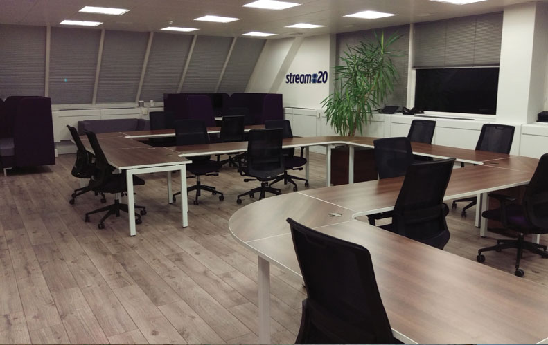 | Commercial Project London EC3 - create a sophisticated multi-functional working environment in a space-limited office To segregate the open-plan into functional areas each workspace was centred on a piece of bespoke furniture. The arrangement of these areas, punctuated with colour and accessories, enables the workforce to choose collaborative or confidential working, without having to physically segment the space. Each of the design elements has a playful, informal feel to encourage clients to use the space as a city hub to independently work and network. Laminate flooring was chosen to replace the carpet tiles allowing staff to glide effortlessly between desks. |