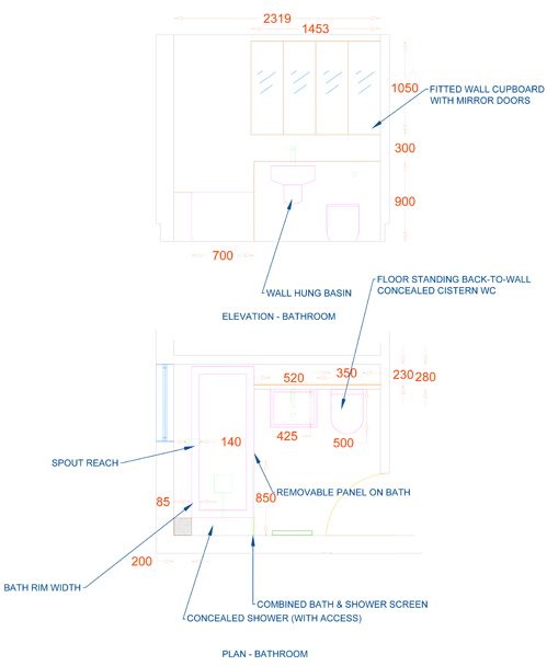Residential Project London SW19 - Plan & Elevation Master Bathroom |